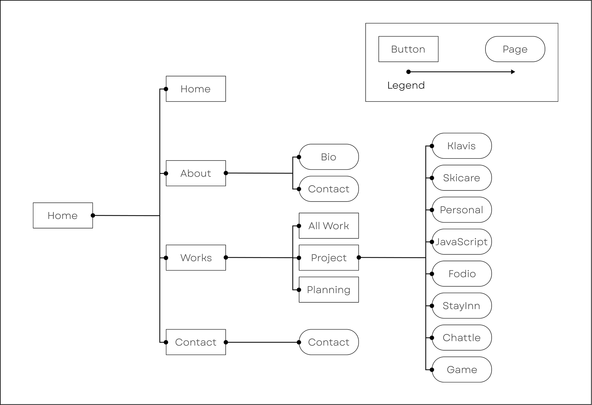 I started my project by researching how other portfolio websites are built. Once I gathered insights and summarized my ideas, I decided to create a straightforward and intuitive site map to keep things simple and effective.